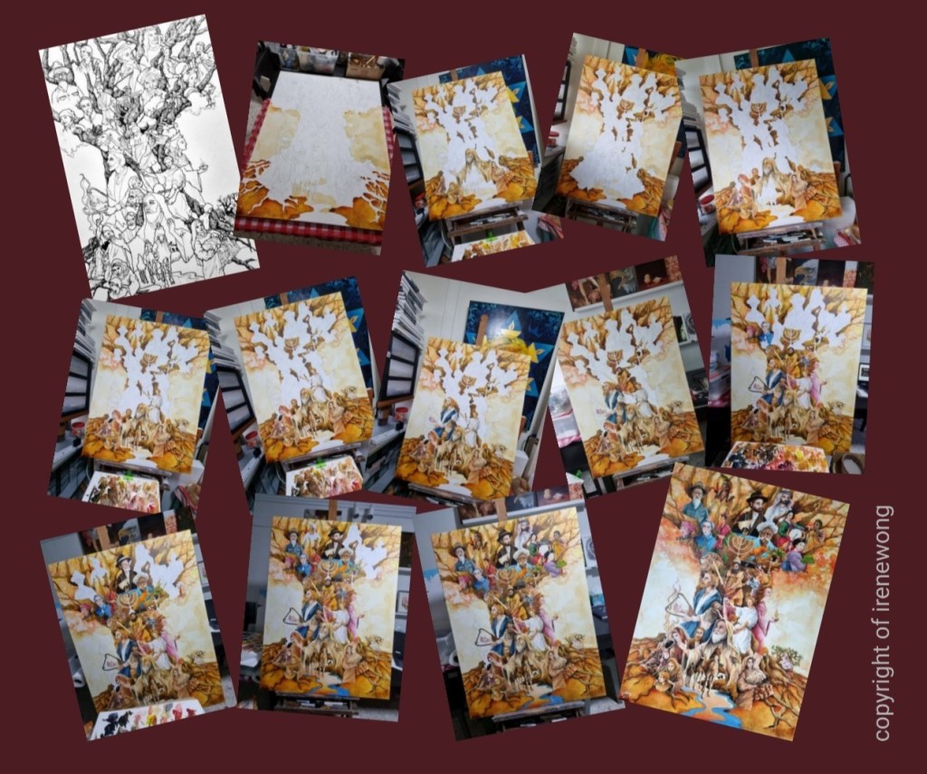 Not only was the painting complicated, it was a difficult and tough painting for me emotionally and mentally. Every stroke was a pain overcomed. I was reduced to ‘zero’ to completely depend on Him in order to finish this artwork with no income from my other artworks and art classes…..ironically the painting was titled ‘Billion”.