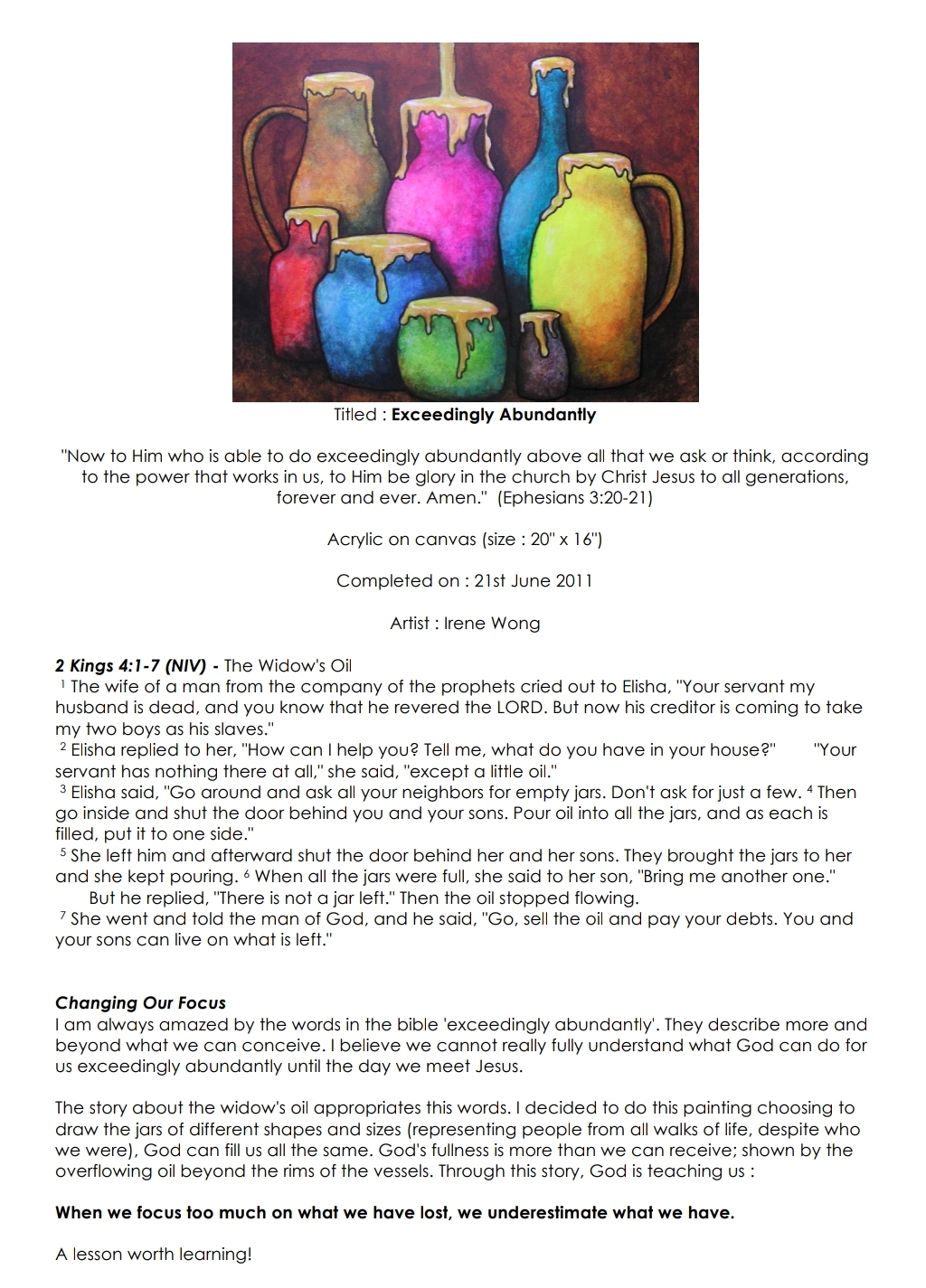 Snap shots of irene’s art journey
